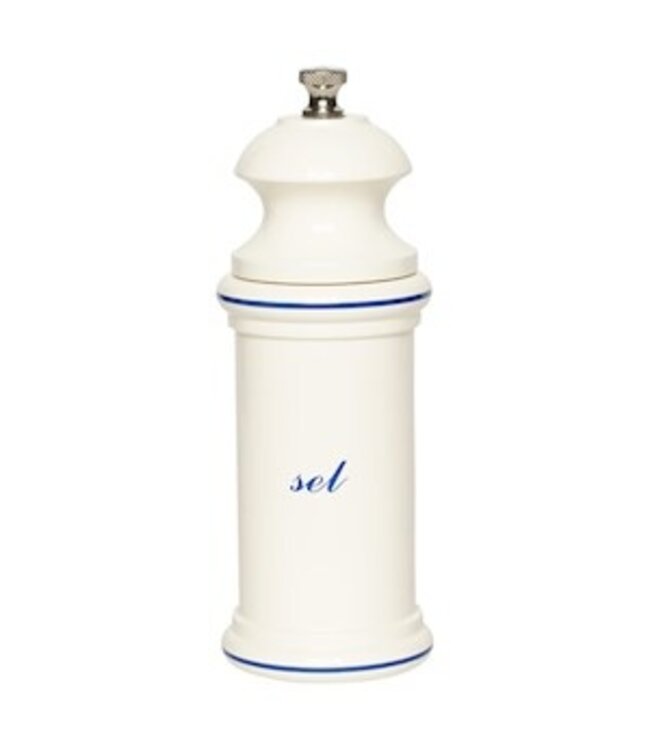 Imagine yourself at a Paris café with our Provencal pepper and salt mills! Featuring Old World French styling, these mills are 6″ tall, and are available in white with blue. Pepper mills have the French word Poivre and Salt mills have the French word Sel.