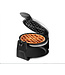 Round plate with four quarters, dual indicator lights: power on and preheated/ready to cook, mess-free anti-overflow channel