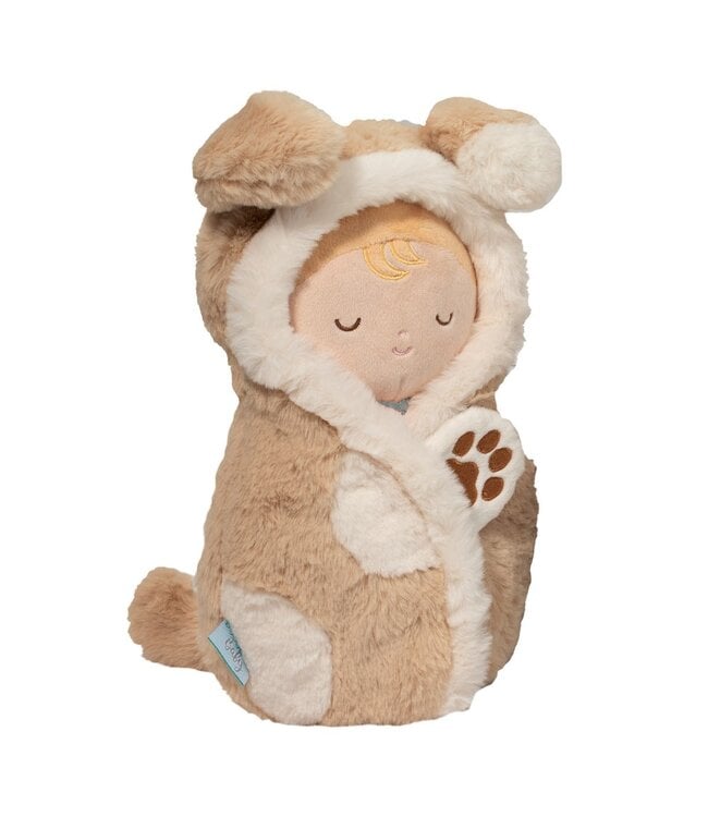 With a little bow wow and a shake of his puppy dog tail, our Baby Pup Hug is off on another dreamy adventure! Ideal for the littlest dog lovers, this playful reimagining of the typical soft doll includes a whimsical Puppy swaddle for wrapping up the cuddly Baby doll. Complete with perky ears and a tail, the swaddle also includes a closure with an embroidered paw print that will invite little hands to interact. It’s plush materials offer further temptation with their luxuriously soft textures. Whether its time to get cozy for a nap or launch into an imaginative session of play, our Baby Pup Hug will inspire hours of snuggly soft fun!
