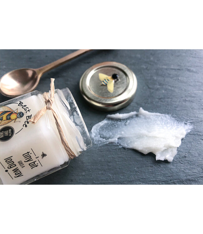 Our Best Bee Savvy is sold in an elegant 1.5 oz jar wrap with a straw wrapper and our signature Best Bee Savvy Bee on the top of the bronze lid. This jar can conveniently be carried in your pocketbook, etc. It is gluten-free, paraben-free and has never been tested on animals.