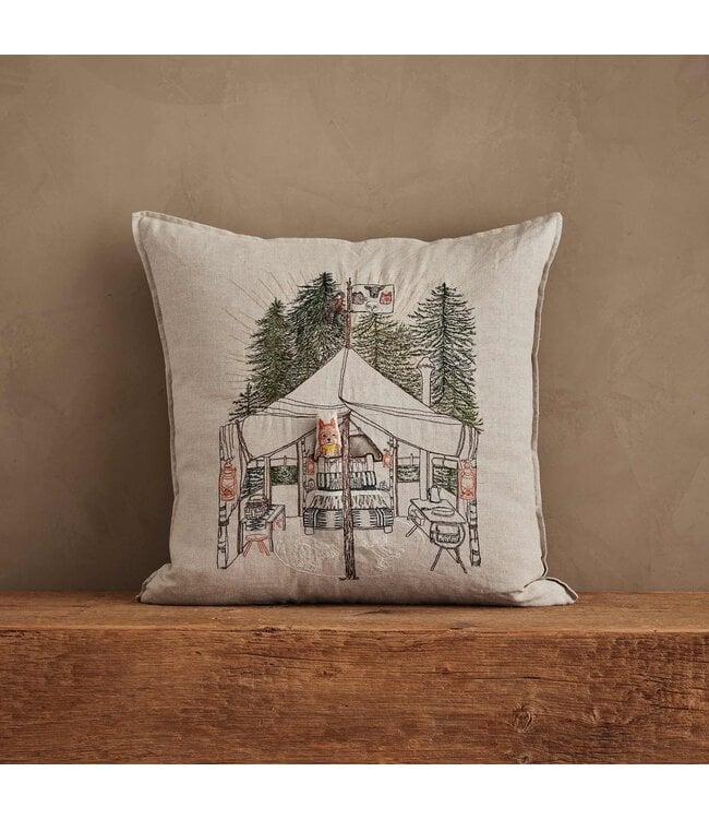 Fox takes camping to the next level with a fully furnished glamping tent and you’re invited! The embroidered abode features a camp stove, Coral & Tusk bedding and lots of lanterns. The single Fox pal can be removed from the pocket. This pillow includes two side-by-side pockets, for more ways to interact!