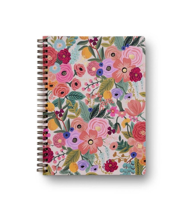 Hit the books with our softcover spiral notebooks, featuring full-color covers with gold foil accents, printed on a heavy-weight textured paper. The notebook has 150 ruled pages, a sturdy double-spiral binding, and pockets for extra storage.