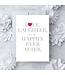 "Love, Laugher & Happily Ever After” greeting card Celebrate Love in Style — A Best-Seller for Wedding Occasions Add timeless elegance to your wedding card selection with our Design With Heart exclusive "Love, Laughter & Happily Ever After" greeting card. Featuring a crisp, modern typographic design accented with a heart, this best-selling card is perfect for engagements, bridal showers, and wedding day celebrations.