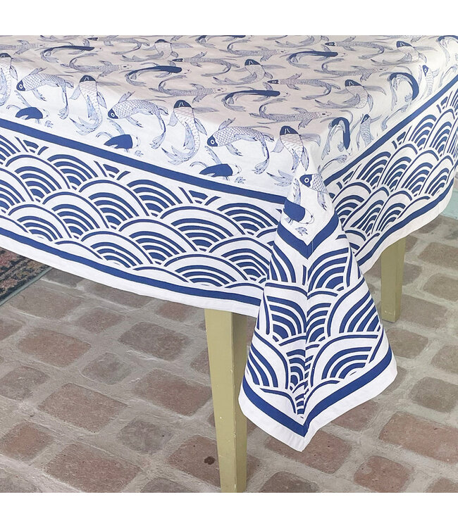 Hand screen printed tablecloth.