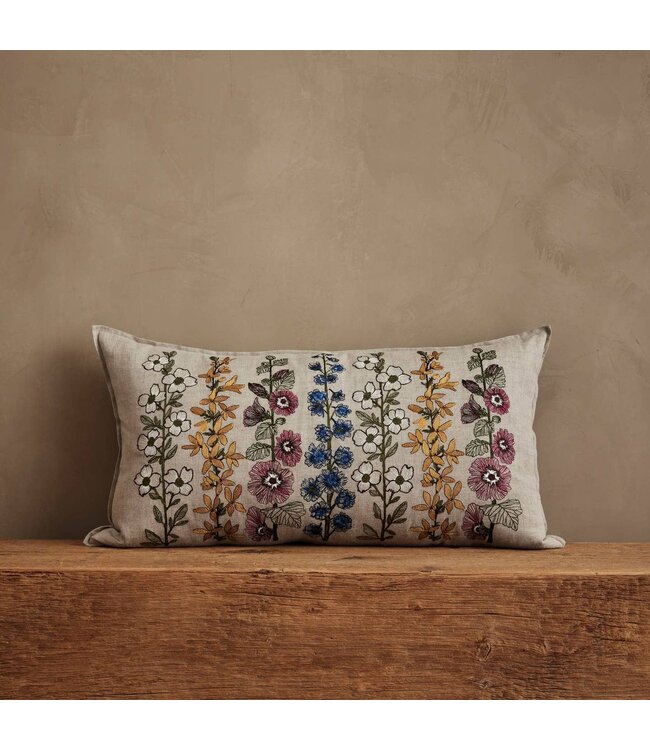 Let spring’s natural beauty transform your space, decorate with our newest floral design, Spring Stems. Embroidered in intricate detail, delphiniums, dogwoods, forsythia, and hollyhocks adorn this cottage-inspired pillow.
