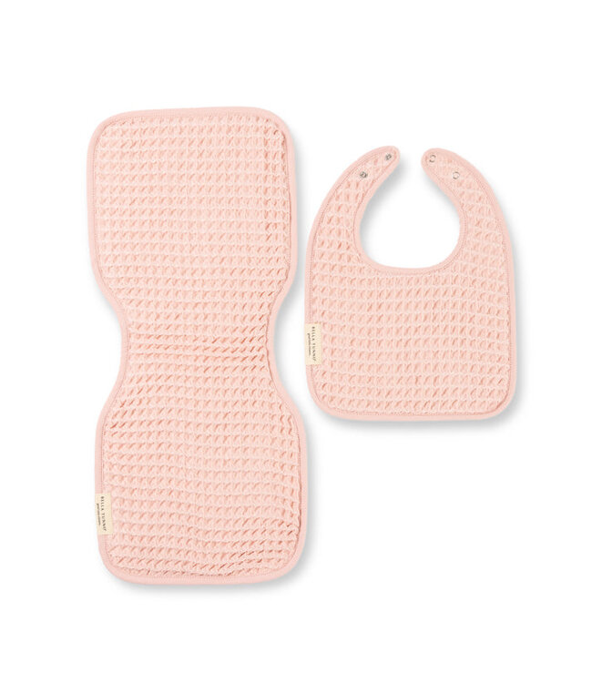 - Includes 1 reversible bib and 1 reversible burp cloth