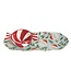 2-piece set. Scallop edge ceramic patterned tray. Comes with hand-painted ceramic peppermint shaped tidbit dish.