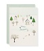 Our Snowy Holiday greeting card is printed in Memphis, TN. Full color ink printed on natural white paper, letterpress printed in gold foil, and paired with a pale blue envelope. Book folded card, blank on the inside.