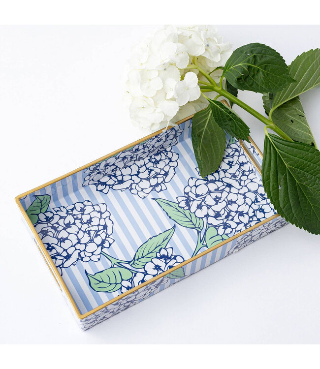 Introducing the Hydrangea Stem Vanity Tray, where chic convenience meets sophisticated style. An elegant way to display small home goods while entertaining friends & family, this luxury tray is designed to turn every gathering into a special occasion. Crafted of resin with functional side handles that make transport a breeze, it boasts an eye-catching hydrangea floral pattern to add texture & beauty to any event. From poolside parties to indoor get-togethers, bring your signature charm & wow factor with the Hydrangea Stem Vanity Tray. Sleek, stylish, & effortlessly practical, itÂ’s the perfect finishing touch for all your celebrations.